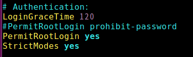 또, PermitRootLogin 설정을 prohibit-password 에서 yes 로 바꿔주었다.