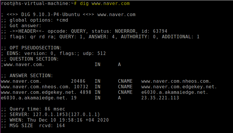 마지막으로 dig 네이버 또한 잘 실행된다.