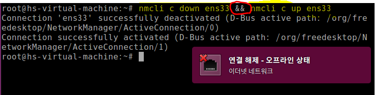 와이파이 연결을 끊었다가(down) 다시 연결(up)