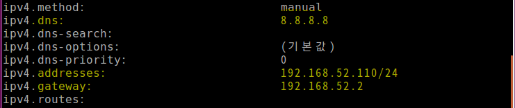 아래와 같이 dns, ip주소, gateway가 바뀐 것을 확인할 수 있다.