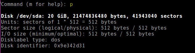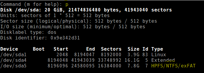 3) p 명령 실행. 현재 파티션 상태 출력.