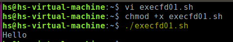 실행권한을 변경하고 실행하면 Hello가 출력된다.