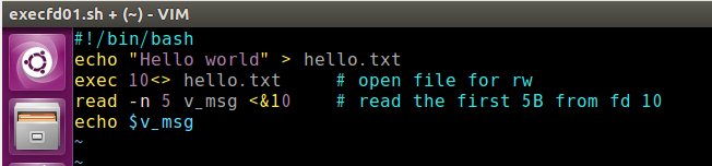 exec #<>FILE : 파일을 read, write가 모두 가능하도록 오픈. 흔하지 않다.