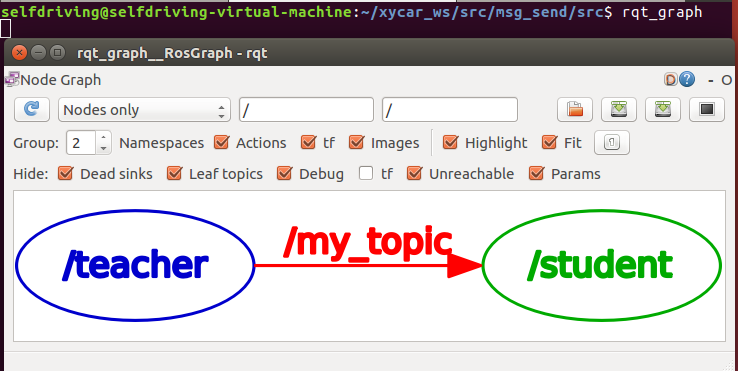rqt_graph를 실행하여 노드 관계를 확인하면 다음과 같다.