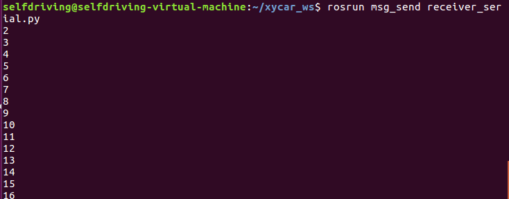 터미널#3에서 rosrun msg_send sender_serial.py 를 실행한 결과는 아래와 같다.