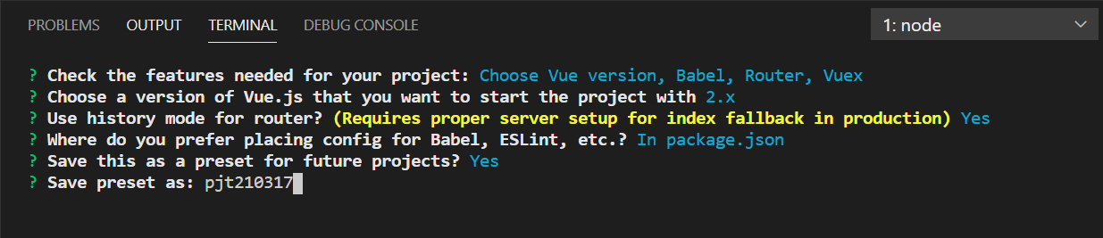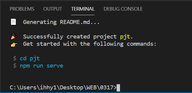 엔터를 치고 조금 기다리면 Vue 프로젝트가 생성된다.