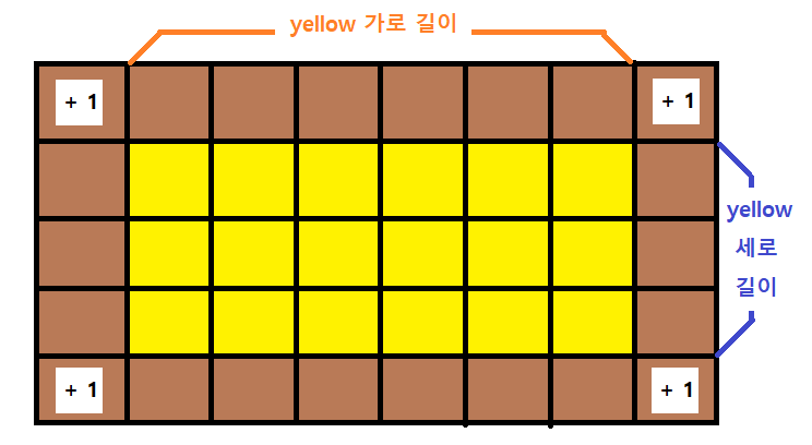 이 둘레에 대한 조건을 만족하면 해당 가로, 세로 길이를 리턴한다.