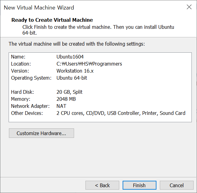 2020/12/07 - [OS/윈도우] - 윈도우 VMware에 우분투(16.04) 설치방법1