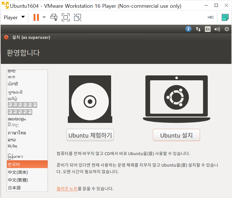 윈도우 VMware에 우분투(16.04) 설치방법1